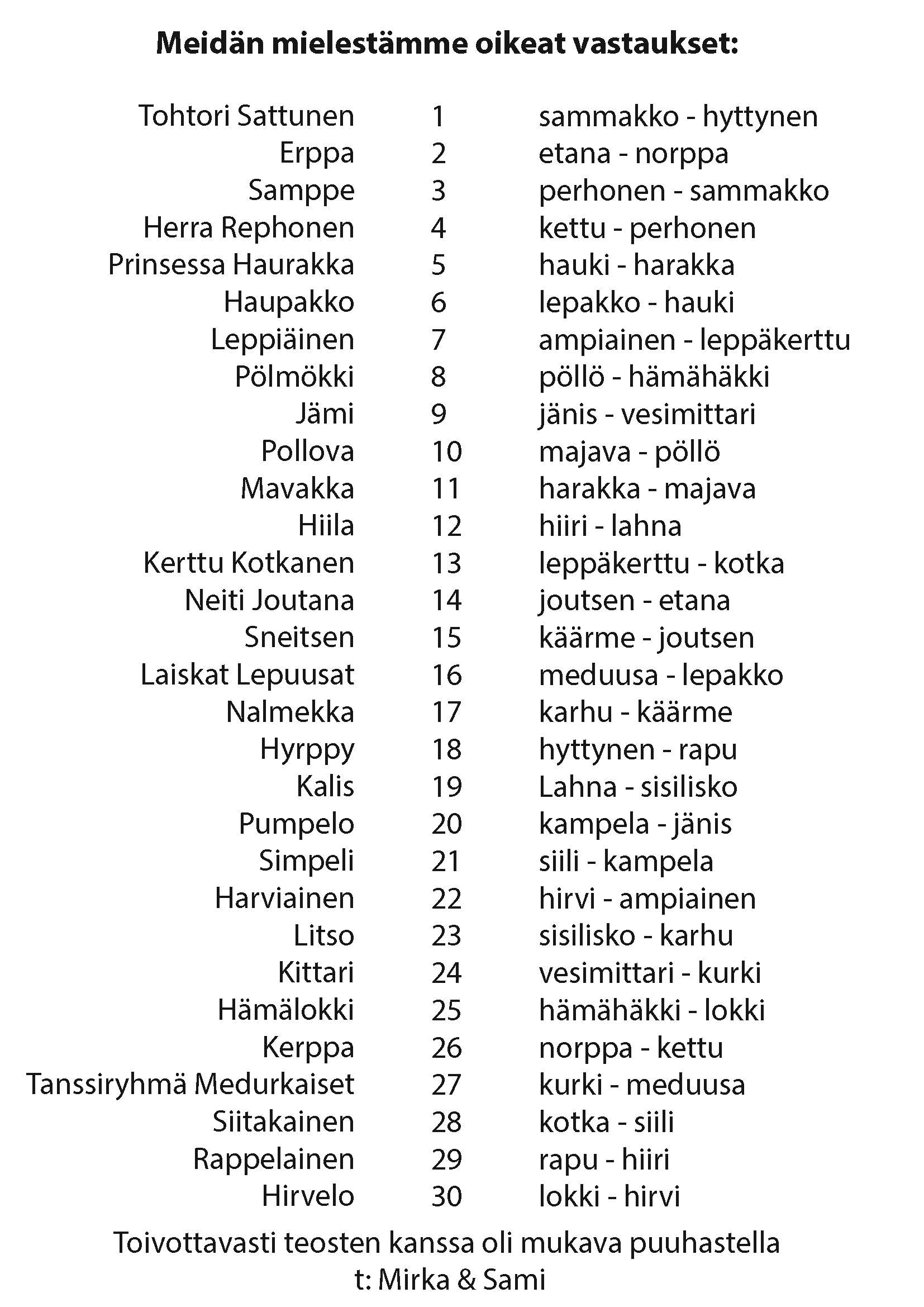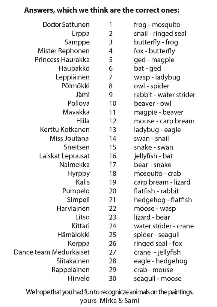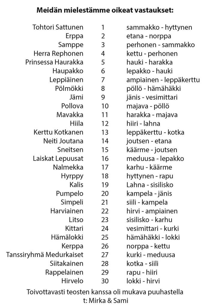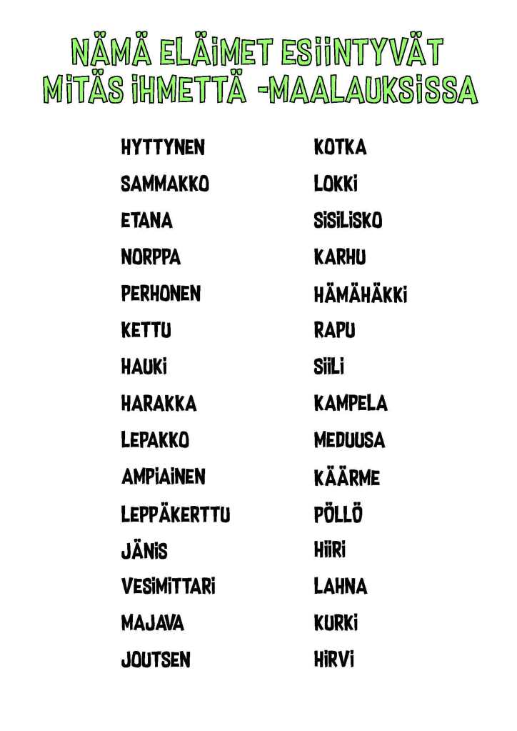AINEISTO eläinluetteloDownload Tehtävälomake 1-15Download Tehtävälomake 16-30Download oikeat vastaukset Download djurlistDownload tabell1-15Download tabell16-30Download ratta svarenDownload List of animalsDownload Worksheet 1-15Download Worksheet 16-30Download Correct answersDownload yhdistä ja väritäDownload erot ja labyrinttiDownload Jaa: Share on X (Opens in new window) X Share on Facebook (Opens in new window) Facebook Like Loading...